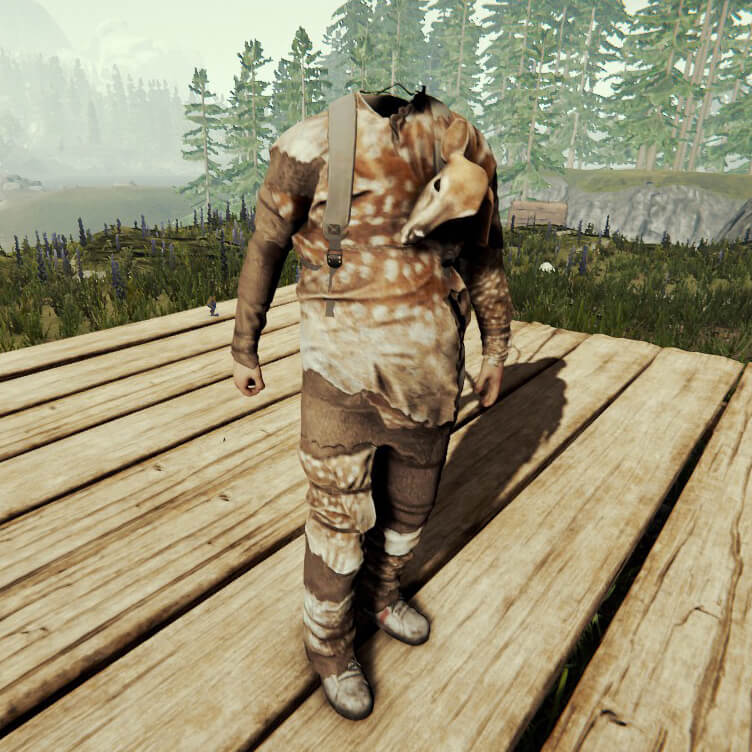Warmsuit Wearing a warm suit replaces all of your current armor forcing you to choose between warmth and damage protection. 1 Raccoon Skin + 4 Boar Skin + 6 Deer Skin + 1 Rabbit Skins + 2 Cloth + 2 Rope